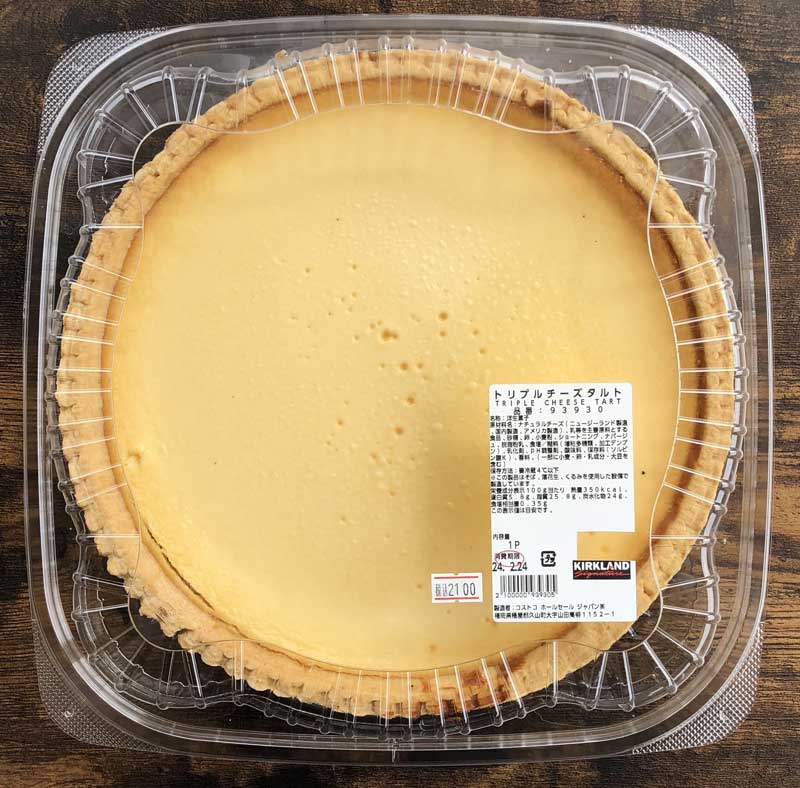 Costcoのおすすめケーキといえばトリプルチーズタルト!Costcoを代表するスイーツです。2種類のクリームチーズとマスカルポーネの計3種類のチーズが使用された、こだわりのチーズタルトです。なめらかな口当たりでとっても濃厚ですが、甘さは控えめで、とっても食べやすくておいしいです。